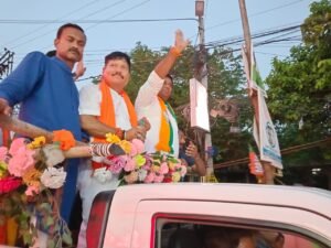 আমাদের ভারত, ব্যারাকপুর, ১৭ মে: হাতে গোনা আর কয়েকটা দিন, তারপরেই ব্যারাকপুর কেন্দ্রে অনুষ্ঠিত হবে লোকসভা নির্বাচন। তার আগে প্রচারে ঝড় তুলেছে তৃণমূল, বিজেপি, বাম সকলেই। প্রধান মন্ত্রী, রাজ্যের মুখ্যমন্ত্রীর পর আবারো প্রার্থীর প্রচারে এলেন হেভি ওয়েট নেতা। ব্যারাকপুরের দলীয় প্রার্থী অর্জুন সিংকে সঙ্গে নিয়ে হুড খোলা গাড়িতে চেপে বৃহস্পতিবার বিকেলে রোড শো করলেন বিজেপির রাজ্য সভাপতি সুকান্ত মজুমদার। এদিন তিনি দলীয় প্রার্থীকে পাশে নিয়ে পলতা বাস স্ট্যান্ড থেকে রোড শো শুরু করেন। এরপর ঘোষপাড়া রোড ধরে লালকুঠি, ব্যারাকপুর স্টেশন হয়ে এস এন ব্যানার্জি রোড ধরে চিড়িয়া মোড়ে রোড শো শেষ করেন।