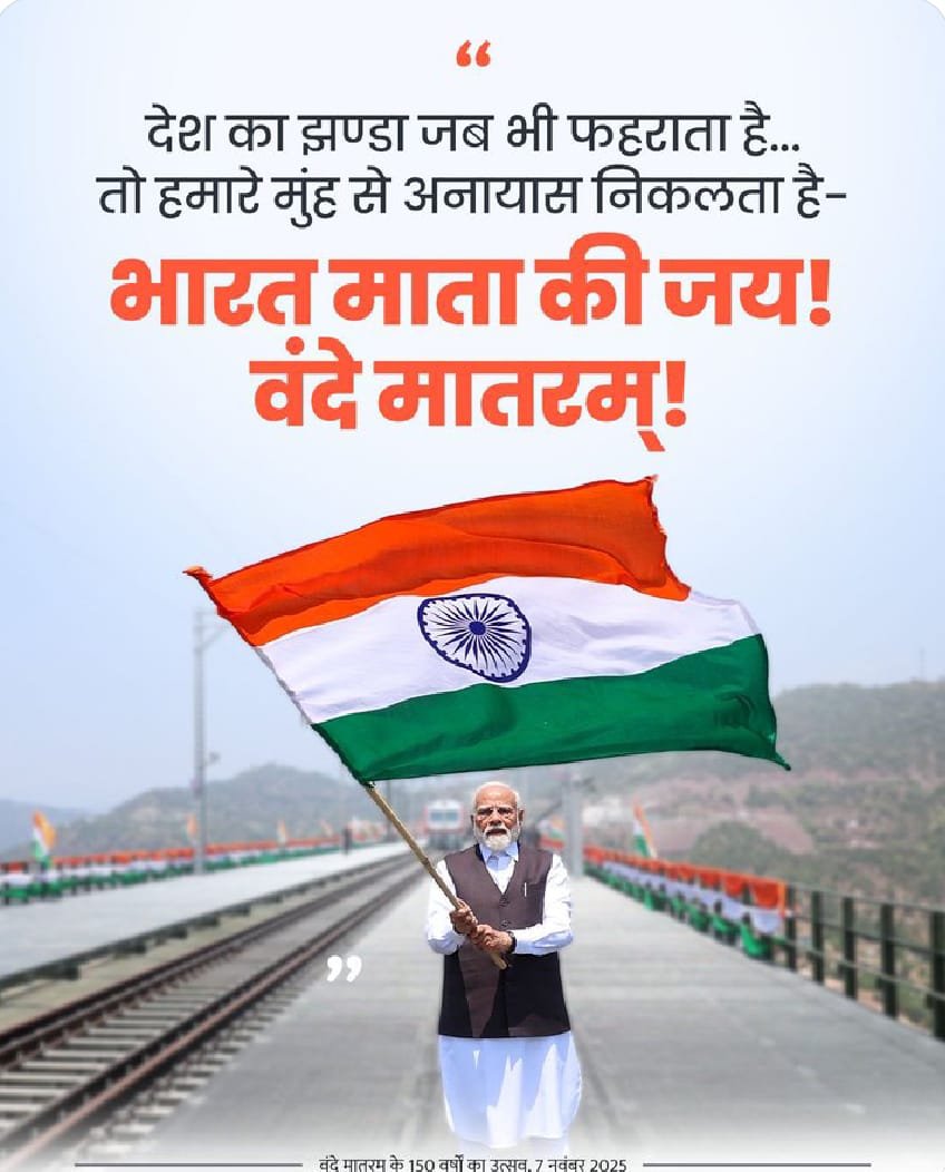 এর আগে বৃহস্পতিবার রাতে অপর এক্সবার্তায় তিনি লেখেন, “৭ নভেম্বর, প্রতিটি ভারতীয়ের জন্য একটি স্মরণীয় দিন। আমরা বন্দে মাতরমের ১৫০তম গৌরবময় বছর উদযাপন করছি, একটি প্রাণবন্ত আহ্বান যা প্রজন্মের পর প্রজন্ম অনুপ্রাণিত করেছে এবং আমাদের দেশজুড়ে দেশপ্রেমের এক অমর চেতনাকে প্রজ্বলিত করেছে। এই উপলক্ষে, আমি সকাল ৯:৩০টায় দিল্লিতে একটি অনুষ্ঠানে যোগ দেব। একটি স্মারক ডাকটিকিট এবং মুদ্রাও প্রকাশ করা হবে। অনুষ্ঠানের মূল আকর্ষণ হবে বন্দে মাতরমের গণ আবৃত্তি!”