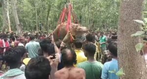 আমাদের ভারত, ঝাড়গ্রাম, ১৫ আগস্ট: স্বাধীনতা দিবসের সকালে শাবক নিয়ে ঝাড়গ্রাম শহরে ঢুকে পড়ল পাঁচটি হাতির একটি দল। হাতির হানায় মৃত্যু হলো ১ ব্যক্তির। বৃহস্পতিবার সকালে ঝাড়গ্রাম শহরের বিদ্যাসাগর পল্লির ঘটনা। মৃত ব্যক্তির নাম অনুপ মল্লিক (৫৪)। বাড়ি বিদ্যাসাগরপল্লী এলাকায়। ঘুম পাড়ানি গুলি করে ধরা হলো একটি হাতিকে।
