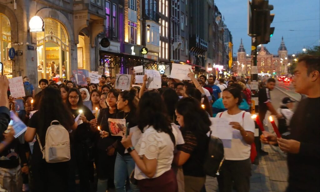 ওই রাতে আমস্টারডাম সেন্ট্রাল থেকে মোমবাতি মিছিল করে প্রতিবাদীরা পায়ে পায়ে এগিয়ে চলেন ড্যাম স্কোয়ারে। সেদিন সোশ্যাল মিডিয়ার মাধ্যমে নেদারল্যান্ডের বিভিন্ন অঞ্চল থেকে বাঙালি, অবাঙালি এমনকি বেশ কিছু ডাচ পরিবার সহ প্রায় একশো জন একত্রিত হন মাত্র কয়েক ঘণ্টার জনসংযোগে।
