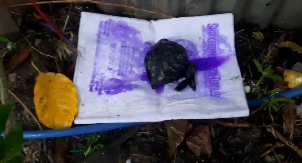 আমাদের ভারত, উত্তর ২৪ পরগণা, ৩১ মে:আগামীকাল অর্থাৎ শনিবার দমদম লোকসভার ভোট। তার আগে খড়দা পৌরসভার ৬ নম্বর ওয়ার্ডের বাসিন্দা বিজেপি কর্মী পিন্টু পালের বাড়ির সামনে একটি সাদা থান কাপড় ও কালো প্লাস্টিকের মধ্যে একটি বোম উদ্ধারের ঘটনায় চাঞ্চল্য ছড়াল। তৃণমূল আশ্রিত দুষ্কৃতীরা এই বোম রেখে ভয় দেখাবার চেষ্টা করেছে বলে অভিযোগ। ঘটনাস্থলে রহড়া থানার পুলিশ এসে বোমাটি উদ্ধার করে নিয়ে যায়। ভোটের আগে এই ঘটনায় আতঙ্কিত এলাকার বাসিন্দারা।