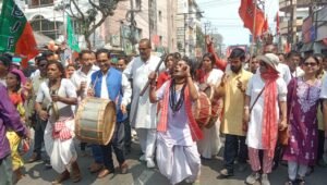 আমাদের ভারত, জলপাইগুড়ি, ১২ মার্চ: দেশজুড়ে সিএএ লাগু হতেই জলপাইগুড়িতে উৎসবে মাতলো মতুয়া ও বিজেপি। মঙ্গলবার জলপাইগুড়ি ডিবিসি রোডের বিজেপি জেলা কার্যালয় থেকে উৎসবের মেজাজে শহরজুড়ে মিছিল করলো মতুয়া ও বিজেপি নেতারা। সাংসদ জয়ন্ত কুমার রায় ও বিজেপি জেলা সভাপতি বাপি গোস্বামী কাঁধে তুলে ঢোল নিয়ে মিছিলে হাঁটলেন। সঙ্গে মতুয়ারা গেরুয়া আবিরে অকাল হোলিতে মাতলেন।