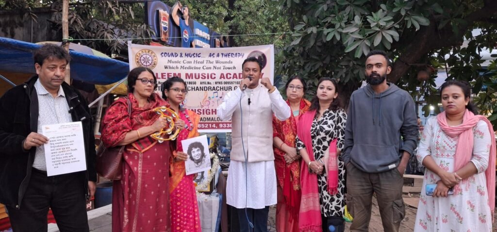 পার্থ খাঁড়া, আমাদের ভারত, ২৪ ডিসেম্বর: অখিল ভারত হিন্দু মহাসভার রাজ্য সভাপতি তথা তালিম মিউজিক অ্যাকাডেমীর কর্ণধার ডক্টর চন্দ্রচূড় গোস্বামীর উদ্যোগে রবীন্দ্রসদন রানুছায়া মঞ্চে উস্তাদ জাকির হোসেনের স্মরণসভা অনুষ্ঠিত হলো। তালিম অ্যাকাডেমি, সিলেস্টিয়াল ইনসাইটস হিলিং এবং হিন্দুমহাসভার সাংস্কৃতিক বিভাগ সমন্বয় মঞ্চের যৌথ উদ্যোগে আয়োজিত এই স্মরণ সভায় উপস্থিত ছিলেন বহু বিশিষ্ট সঙ্গীত শিল্পী এবং হিন্দু মহাসভার সদস্যরা।