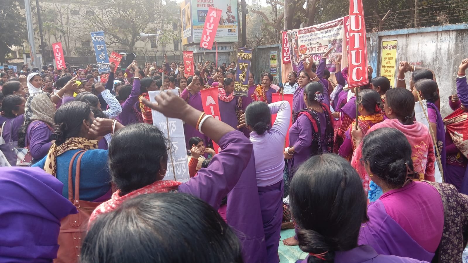 সোমনাথ বরাট, আমাদের ভারত, বাঁকুড়া, ৩০ জানুয়ারি: বিভিন্ন দাবিতে রাজ্যজুড়ে আশা কর্মীদের আন্দোলন চলছে, আন্দোলন রত আশা কর্মীরা আজ সদর মহকুমা শাসকের দপ্তরের সামনে অবস্থান ও বিক্ষোভ দেখান। আজ দুপুরে আশা কর্মীরা মিছিল সহকারে সদর মহকুমা শাসকের দপ্তরের সামনে হাজির হন। এই কর্মসূচি ঘিরে অপ্রীতিকর ঘটনা এড়াতে ব্যাপক পুলিশি বন্দোবস্ত করা হয়।