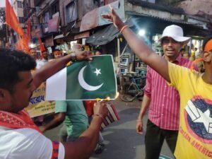 সোমনাথ বরাট, আমাদের ভারত, বাঁকুড়া, ২৫ এপ্রিল: কাশ্মীরের পেহেলগাঁও- এ নৃশংস হিন্দু হত্যার প্রতিবাদে আজ বিকেলে বজরং দলের পক্ষ থেকে এক বিক্ষোভ মিছিল শহর পরিক্রমা করে।বঙ্গবিদ্যালয় মাঠ থেকে মিছিল শুরু করে মাচানতলা, জিপি সিংহ রোড, বড়বাজার, সুভাষ রোড, বীর সাভারকর সরণি হয়ে মাচানতলা মুক্ত মঞ্চে সমাপ্ত হয়। পাকিস্তান মুর্দাবাদ, ইসলামী সন্ত্রাসীদের কঠোর শাস্তি চাই ইত্যাদি শ্লোগানে গলা মিলিয়ে প্রায় দুই শতাধিক বজরং কর্মী মিছিলে অংশ নেয়।