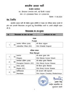 আমাদের ভারত, ১৬ জুন: পশ্চিমবঙ্গের চার বিধানসভা আসনে উপনির্বাচন হবে। তৃণমূল কংগ্রেস আগেই তাদের প্রার্থীর নাম ঘোষণা করে দিয়েছে। আজ বিজেপির তরফে তাদের প্রার্থীদের নাম ঘোষণা করা হলো। এই চারটির মধ্যে তিনটি আসনেই বিজেপির প্রার্থীরা ২০২১ সালে জিতেছিলেন। কিন্তু তারা প্রত্যেকেই পরে তৃণমূল কংগ্রেসের যোগ দেন। লোকসভা নির্বাচনে প্রার্থী হন বিধায়ক পদে ইস্তফা দিয়ে। তবে তারা সকলেই হেরেছেন। স্বাভাবিকভাবেই মানিক তলা ছাড়া সব কেন্দ্রেই বিজেপি নিজের প্রার্থী বদল করেছে।