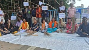 সোমনাথ বরাট, আমাদের ভারত, বাঁকুড়া, ২৩ সেপ্টেম্বর: আর জি কর কান্ডে পুলিশ এবং প্রশাসনের ভূমিকায় ক্ষুব্ধ বিজেপির মহিলা শাখা। এই ক্ষোভ জানাতে এবং পুলিশ প্রশাসনকে শুদ্ধ করতে আজ মহিলা মোর্চার উদ্যোগে বাঁকুড়ায় এস পি অফিস ঘেরাও এবং শুদ্ধিকরণ কর্মসূচি পালিত হয়। আজ সকালে বাঁকুড়া জেলা বিজেপি মহিলা মোর্চার সভানেত্রী ববিতা ব্যনার্জির নেতৃত্বে বিরাট মিছিল করে এস পি ঘেরাও করা হয়।মহিলা মোর্চার অভিযান ঘিরে এস পি অফিস সংলগ্ন এলাকায় পুলিশি নিরাপত্তায় মুড়ে ফেলা হয়। পুলিশ মিছিলের গতিরোধ করলে সেখানেই বিক্ষোভ শ্লোগান শুরু হয়। চলে সভা।