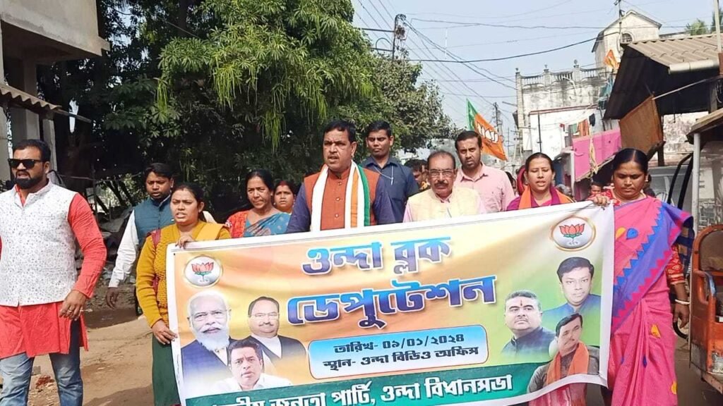 সোমনাথ বরাট, আমাদের ভারত, বাঁকুড়া, ৯ জানুয়ারি: পঞ্চায়েত সমিতিতে দুর্নীতি, চুরির অভিযোগ ও তদন্তের দাবিতে ওন্দা বিডিও অফিসে স্মারকলিপি দিতে গিয়ে বিজেপি বিধায়ক তথা বিজেপির বিষ্ণুপুর সাংগঠনিক জেলার সভাপতি অমরনাথ শাখা বাধা পাওয়ায় তীব্র উত্তেজনার সৃষ্টি হয়।এদিন স্মারকলিপি জমা দেওয়ার জন্য বিধায়কের নেতৃত্বে এক মিছিল ওন্দার বিভিন্ন এলাকা পরিক্রমা করে বিডিও অফিসের সামনে এসে হাজির হয়। ওই সময় অফিসের প্রধান গেট বন্ধ করে দেওয়া হয়। যার ফলে গেটের মুখেই আটকে পড়েন বিধায়ক ও কয়েকশো কর্মী সমর্থক।