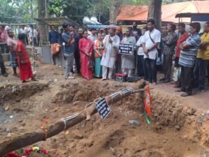 আশিস মণ্ডল, আমাদের ভারত, রামপুরহাট, ২৭ ফেব্রুয়ারি: তারাপীঠ শ্মশানে গড়া হচ্ছিল নোংরা জল মজুতের ট্যাঙ্ক। প্রতিবাদে সরব হলো বিজেপি। বৃহস্পতিবার মাটি ফেলে নির্মাণ কাজ বন্ধ করে দিল বিজেপি। অভিযোগ, তারাপীঠ মহাশ্মশানে বৈষ্ণব সম্প্রদায়ের সমাধিস্থলের উপর এই কংক্রিটের স্থায়ী ট্যাঙ্ক নির্মাণ করা হচ্ছে।