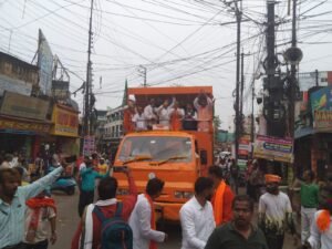 পরিবর্তন যাত্রা ঘিরে জেলাজুড়ে ব্যাপক উন্মাদনা লক্ষ্য করা যায় বিজেপি কর্মীদের মধ্যে। আজ শালতোড়া, ছাতনা, কমলপুর হয়ে বিকেলে বাঁকুড়া শহরে পৌঁছায় বিজেপির রথযাত্রা।সকাল ১১টা নাগাদ বাঁকুড়া শহরের লালবাজারে প্রবেশ করার কর্মসূচি থাকলেও বহু পরে এসে পৌঁছায় বিশাল কনভয় সহ রথযাত্রা।