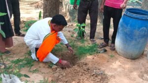 পার্থ খাঁড়া, আমাদের ভারত, ঝাড়গ্রাম, ৩ মে: চিকিৎসক থেকে রাজনীতির ময়দানে। প্রতিনিয়ত তীব্র দাবদাহের মধ্যে ভোট প্রচারের জন্য দিনরাত এক করে প্রচার করতে হচ্ছে। ভোট প্রচারে বেরিয়ে তীব্র দাবদাহের প্রধান কারণ হিসেবে গাছের সংখ্যা কমে যাওয়াকে উপলব্ধি করেছেন ঝাড়গ্রাম লোকসভা কেন্দ্রের বিজেপি প্রার্থী ডঃ প্রণত টুডু। তাই সাধারণ মানুষকে গাছ লাগানোর বার্তা দেওয়ার জন্য শুক্রবার দুপুরে জঙ্গলমহল জুলজিক্যাল পার্ক সংলগ্ন এলাকায় বৃক্ষরোপণ করেন প্রার্থী। তিনি প্রতিবছর কুড়ি হাজার করে মোট এক লক্ষ গাছ লাগানোর টার্গেট নিয়েছেন পাঁচ বছরের মধ্যে।