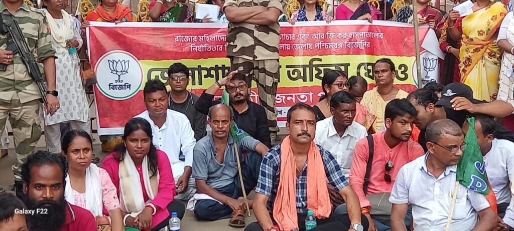 সোমবার বেলা সাড়ে বারোটা নাগাদ সিপাই বাজারের বিজেপি কার্যালয় থেকে মিছিল করে জেলাশাসকের দপ্তরের মূল গেটের বাইরে বিক্ষোভ দেখালো কয়েক হাজার বিজেপির দলীয় কর্মী সমর্থকরা। দলীয় ঝান্ডা হাতে নিয়ে ব্যানার সামনে রেখে এই প্রতিবাদ মিছিল করে বিজেপি। এই মিছিল থেকে রাজ্যজুড়ে মহিলাদের ওপর অত্যাচারের পাশাপাশি আরজিকর হাসপাতালে মহিলা চিকিৎসককে ধর্ষণ করে খুন করার প্রতিবাদে ও শাস্তির দাবিতে সোচ্চার হন বিক্ষোভকারীরা।