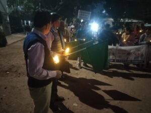 সোমনাথ বরাট, আমাদের ভারত, বাঁকুড়া, ২ ডিসেম্বর: মারণ ব্যাধি এইডস সম্বন্ধ্যে জনসাধারণকে সচেতন করতে বিশ্ব এইডস দিবস উপলক্ষ্যে আজ এক মোমবাতি মিছিলের আয়োজন করা হয়। বাঁকুড়া জেলা স্বাস্থ্য দপ্তরের উদ্যেগে আয়োজিত এই মোমবাতি মিছিলে স্বাস্থ্য কর্মী ও বিভিন্ন স্বেচ্ছাসেবী সংগঠনের সদস্যরা উপস্থিত ছিলেন।জেলা স্বাস্থ্য দপ্তর প্রাঙ্গণে আয়োজিত এক অনুষ্ঠানে জেলা স্বাস্থ্য আধিকারিক ডাঃ শ্যামল সরেন পতাকা উত্তোলন করে মিছিলের সূচনা করেন।