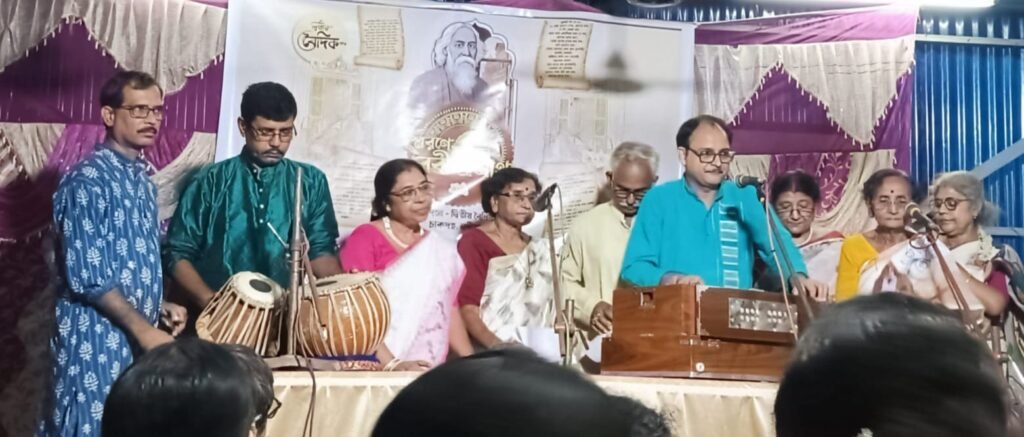 চাকদহের বিশিষ্ট কবি দেবজ্যোতি রায় ‘রবীন্দ্রনাথ এবং তাঁর পরবর্তী কাব্যপ্রবাহে গ্রহণ- বর্জন’– এই বিষয়ের উপর মনোজ্ঞ আলোচনা করলেন। গত শতকের ত্রিশের দশক থেকে রবীন্দ্র প্রভাবমুক্ত কাব্য অনুশীলনকে রবীন্দ্রনাথ কীভাবে গ্রহণ করেছিলেন, তরুণ কবিরাই বা রবীন্দ্রনাথকে কীভাবে মূল্যায়ণ করলেন– এই ছিল তাঁর আলোচ্য বিষয়। রবীন্দ্রনাথের গীতাঞ্জলি পর্যায় নিয়ে সংক্ষিপ্ত তথ্য সমৃদ্ধ আলোচনা করলেন শিক্ষক ও কবি সঞ্জিত দাস। অধ্যাপক ডঃ উত্তম পাল এই সংগঠনের বিকাশে আরও বেশি মানুষের অংশগ্রহণের আহ্বান জানান। তিনি সর্বতোভাবে এই সংগঠনকে সহযোগিতা করার আশ্বাস দেন। সর্বমোট ৬২ জন শিল্পী এই অনুষ্ঠানে অংশগ্রহণ করেন।