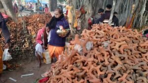 পার্থ খাঁড়া, আমাদের ভারত, পশ্চিম মেদিনীপুর, ১৫ জানুয়ারি: সকালের সূর্যোদয় থেকে সূর্যাস্ত পর্যন্ত এই একটি দিনই পৌষের নতুন চালের পায়েস ও খিচুড়ি সহযোগে চণ্ডী মায়ের পুজো ও সঙ্গে পৌষ পার্বণ মেলা আয়োজিত হল পশ্চিম মেদিনীপুরের কেশিয়াড়ির ওলদাতে। প্রায় ৫০০ বছরের প্রাচীন এই পৌষ পার্বণ মেলা প্রতি বছরের মতো এবছরও আয়োজিত হয়। সকালের সূর্যোদয় থেকে শুরু করে সূর্যাস্ত পর্যন্ত এই একটি দিনই এই মেলা বসে। একদিনের এই মেলায় ওলদা গ্রাম সহ কেশিয়াড়ির পার্শ্ববর্তী বিভিন্ন গ্রামের প্রায় লক্ষাধিক মানুষ ভিড় জমান। বিশেষ আকর্ষণ সারি সারি উনুনে একসঙ্গে একাধিক পিতলের হাঁড়িতে পৌষের নতুন চালের খিরের পায়েস ও খিচুড়ি ভোগ রান্না করে মাকে ভক্তি সহযোগে পুজো দেন ভক্তরা। সারা বছর শনি ও মঙ্গলবার এই পুজো হলেও, বিশেষত পৌষ মাসে নতুন চালের পায়েস এবং খিচুড়ি সহযোগে এই পূজার্চনা করা হয়। কয়েক হাজার ভক্তের ভিড় জমে এই স্থানে।