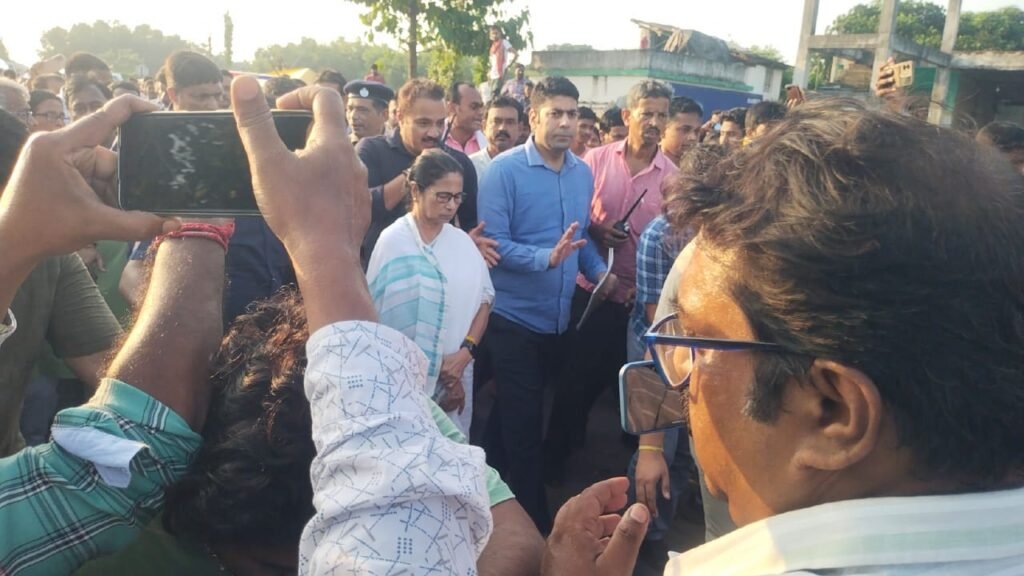 পার্থ খাঁড়া, আমাদের ভারত, পশ্চিম মেদিনীপুর, ১৮ সেপ্টেম্বর: পশ্চিম মেদিনীপুরের ঘাটাল মহকুমার বন্যা পরিস্থিতি পরিদর্শন করেছেন রাজ্যের মুখ্যমন্ত্রী মমতা বন্দ্যোপাধ্যায়। এদিন বিকেলে হুগলির পুড়শুড়া থেকে ফেরার পথে তিনি ঘাটালের রানীরবাজারে এসে পৌঁছোন। সেখানে তিনি বন্যা পরিস্থিতি পর্যবেক্ষণ করেন। দুর্গতদের মধ্যে কিছু ত্রাণ সামগ্রী বিতরণ করা হয়। সঙ্গে ছিলেন জেলা পরিষদের সভাধিপতি প্রতিভা মাইতি, পশ্চিম মেদিনীপুরের জেলা শাসক খুরশিদ আলি কাদেরী, পুলিশ সুপার ধৃতিমান সরকার সহ অন্যান্য। বাঁচাতে গিয়ে সবকটা গেট খুলে দিয়ে লক্ষ লক্ষ কিউশেক জল একসাথে ছেড়ে বাংলার মানুষকে ডুবিয়ে মারা হচ্ছে।” এই বন্যাকে তিনি ‘ম্যান মেড বন্যা’ বলে অভিযোগ করেন।