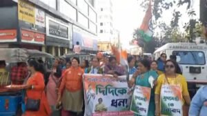 শনিবার মেদিনীপুর মহিলা তৃণমূল কংগ্রেসের পক্ষ থেকে শহরের নান্নুরচকস্থিত কার্যালয় থেকে একটি বর্ণাঢ্য শোভাযাত্রার আয়োজন করা হয়েছিল। মহিলা তৃণমূলের সভাপতি মৌ রায়ের নেতৃত্বে এই শোভাযাত্রাটি হয়। শোভা যাত্রা থেকে পথ চলতি মানুষদের চকোলেট খাওয়ানো হয়। দিদিকে ধন্যবাদ জানিয়ে এই শোভাযাত্রায় পা মেলান শতাধিক মহিলা। তাসা বাজিয়ে, নেচে নেচে চলে শোভাযাত্রা।