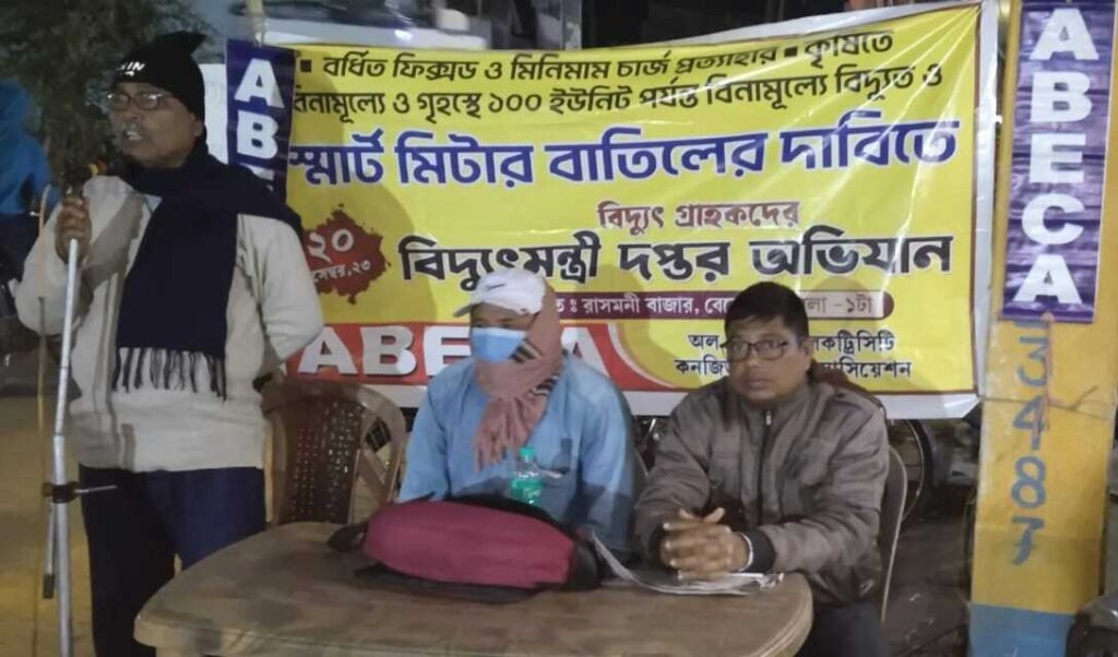 পার্থ খাঁড়া, আমাদের ভারত, পশ্চিম মেদিনীপুর, ১৭ ডিসেম্বর: স্মার্ট প্রিপেইড মিটার লাগানোর চক্রান্ত বাতিল, ফিক্সড চার্জ দ্বিগুন বৃদ্ধি ও মিনিমাম চার্জ তিনগুন এবং ডিস কানেকশন ও রি- কানেকশন চার্জ পাঁচগুন বৃদ্ধির বিরুদ্ধে এবং কৃষিতে বিনামূল্যে ও গৃহস্থ গ্রাহকদের ১০০ ইউনিট পর্যন্ত বিনা পয়সায় বিদ্যুৎ সরবরাহের দাবিতে ২০ ডিসেম্বর কলকাতায় বিদ্যুৎ মন্ত্রীর দপ্তরে বিক্ষোভ ও ডেপুটেশন কর্মসূচি নেওয়া হয়েছে।