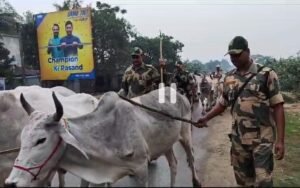 পিন্টু কুন্ডু, বালুরঘাট, ৬ ডিসেম্বর: দিনের আলোতেই গোরু পাচারের ছক দক্ষিণ দিনাজপুরে। পতিরাম থানার পাগলীগঞ্জ থেকে উদ্ধার কয়েক লক্ষ টাকার গোরু। বুধবার বিকেলে এই ঘটনাকে ঘিরে তুমুল উত্তেজনা ছড়ায় এলাকায়। গোপন খবরের ভিত্তিতে অভিযান চালিয়েই সুদূর হরিয়ানা থেকে আগত প্রায় ১২টি গোরু এদিন উদ্ধার করেছে ১৩৭ নম্বর বিএসএফ ব্যাটেলিয়নের জওয়ানরা। উদ্ধার হওয়া গোরুগুলি বাংলাদেশে পাচারের উদ্দেশ্যেই জমা করা হয়েছিল বলে দাবি করেছে বিএসএফ। যার বাজার মূল্য ভারতীয় মুদ্রায় কয়েক লক্ষ টাকা বলেও দাবি করেছে বিএসএফ।