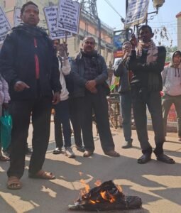 সোমনাথ বরাট, আমাদের ভারত, বাঁকুড়া, ১৬ জানুয়ারি: গ্রামজী ও বীজ বিলের বিরুদ্ধে পথে নামলো সিপিআইএম লিবারেশন। আজ ওই দুই বিলের কপি পুড়িয়ে প্রতিবাদ জানায় সিপিআইএম লিবারেশন। সংযুক্ত কিষান মোর্চার ডাকে সারা দেশজুড়ে প্রতিবাদ দিবসের সমর্থনে আজ বাঁকুড়া শহরের মাচানতলায় আকাশ মুক্ত মঞ্চে সিপিআই (এম-এল) লিবারেশন- এর ডাকে এক প্রতিবাদ সভা অনুষ্ঠিত হয়। প্রতিবাদ সভায় ওই বিলের কপিতে আগুন লাগানো হয়।