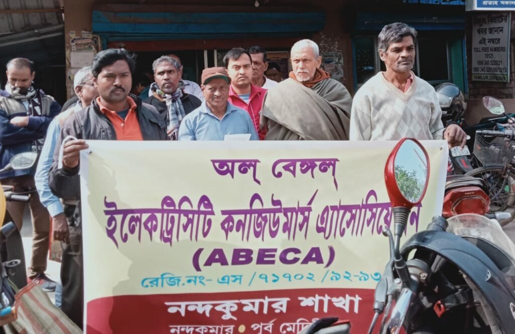 পার্থ খাঁড়া, আমাদের ভারত, পূর্ব মেদিনীপুর, ৪ এপ্রিল: বিদ্যুতের বেসরকারিকরণ ও স্মার্ট প্রিপেড মিটার লাগানো বন্ধ, বর্ধিত ফিক্সড ও মিনিমাম চার্জ প্রত্যাহার, চাষের মরশুমে লাইন না কাটা, গৃহস্থের মাসে ২০০ ইউনিট পর্যন্ত বিদ্যুতে ছাড়, কৃষিতে বিনামূল্যে বিদ্যুৎ ও এলপিএসসি.(জরিমানা) মুকুব, অন্যায়ভাবে লোডের ভিত্তিতে অতিরিক্ত সিকিউরিটি ডিপোজিট আদায় না করে গ্রাহকদের জমা রাখা সিকিউরিটির উপর আইনসম্মতভাবে সুদের টাকা ফেরত সহ বিদ্যুৎ গ্রাহকদের গুরুত্বপূর্ণ কতগুলি দাবি নিয়ে অল ইন্ডিয়া ইলেকট্রিসিটি কনজিউমার্স অ্যাসোসিয়েশনের আহ্বানে ১ থেকে ৭ এপ্রিল সারা ভারত প্রতিবাদ সপ্তাহ কর্মসূচি চলছে। ওই কর্মসূচির পরিপ্রেক্ষিতে আজ নন্দকুমার কাস্টমার কেয়ার সেন্টারে অ্যাবেকা নন্দকুমার শাখার পক্ষ থেকে নন্দকুমার বাজারে প্রচার ও স্টেশন ম্যানেজার অফিসে বিক্ষোভ সভা এবং ডেপুটেশন দেওয়া হয়।