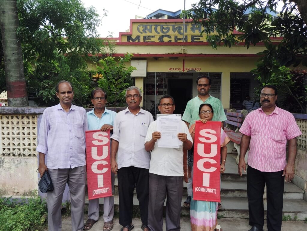 জিআরপিএফ- এর পাঁশকুড়ার, ওসি’র কাছে ডেপুটেশন ও স্মারকলিপি জমা দেওয়া হয়। ডেপুটেশনের প্রতিনিধি দলে ছিলেন এসইউসিআই মেচেদা লোকাল কমিটির সম্পাদক সুব্রত দাস, জেলা সম্পাদক মন্ডলীর সদস্য নারায়ণ চন্দ্র নায়ক, চিন্ময় ঘোড়াই, জেলা কমিটির সদস্য স্বপন জানা ও অন্যান্য নেতৃবৃন্দ।