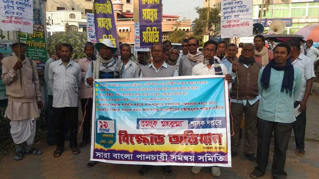 পার্থ খাঁড়া, আমাদের ভারত, পূর্ব মেদিনীপুর, ১৯ ডিসেম্বর: গুছিতে ৫০টির বেশি পান না দেওয়ার সরকারি সিদ্ধান্ত কার্যকর করার দাবিতে তমলুক মহকুমা শাসক দপ্তরে ডেপুটেশন দিল পানচাষি সমন্বয় সমিতি। সরকারি নির্দেশিকা গত ১লা অক্টোবর থেকে চালু হলেও জেলায় জেলায় তা কার্যকর করার ক্ষেত্রে প্রশাসন, বিশেষত মার্কেটিং অফিসার গড়িমসি করছেন। তার বিরুদ্ধে আজ পূর্ব মেদিনীপুর জেলার তমলুক মহকুমা শাসক দফতরে পানচাষি সমন্বয় সমিতির পক্ষ থেকে ডেপুটেশন দেওয়া হয়। তমলুক হাসপাতাল মোড় থেকে মিছিল করে মহকুমা শাসকের দপ্তরে এসে বিক্ষোভ সভায় সামিল হয় শতাধিক পানচাষি। বক্তব্য রাখেন কমিটির সভাপতি প্রবীর প্রধান, সম্পাদক সোমনাথ ভৌমিক, সোমনাথ মাইতি, প্রভাস মাইতি, কার্তিক বেরা প্রমুখ।