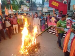 সোমনাথ বরাট, আমাদের ভারত, বাঁকুড়া, ৩০ নভেম্বর: বাংলাদেশে হিন্দু নিধন বন্ধ করার দাবিতে ইসকন সন্ন্যাসী চিন্ময় প্রভুর মুক্তির দাবিতে আজ বাঁকুড়ায় বিক্ষোভ দেখিয়ে মহম্মদ ইউনুসের কুশপুত্তলিকা দাহ করা হয়। এই ঘটনায় শহরের প্রাণকেন্দ্র মাচানতলায় চাঞ্চল্য ছড়িয়ে পড়ে।
