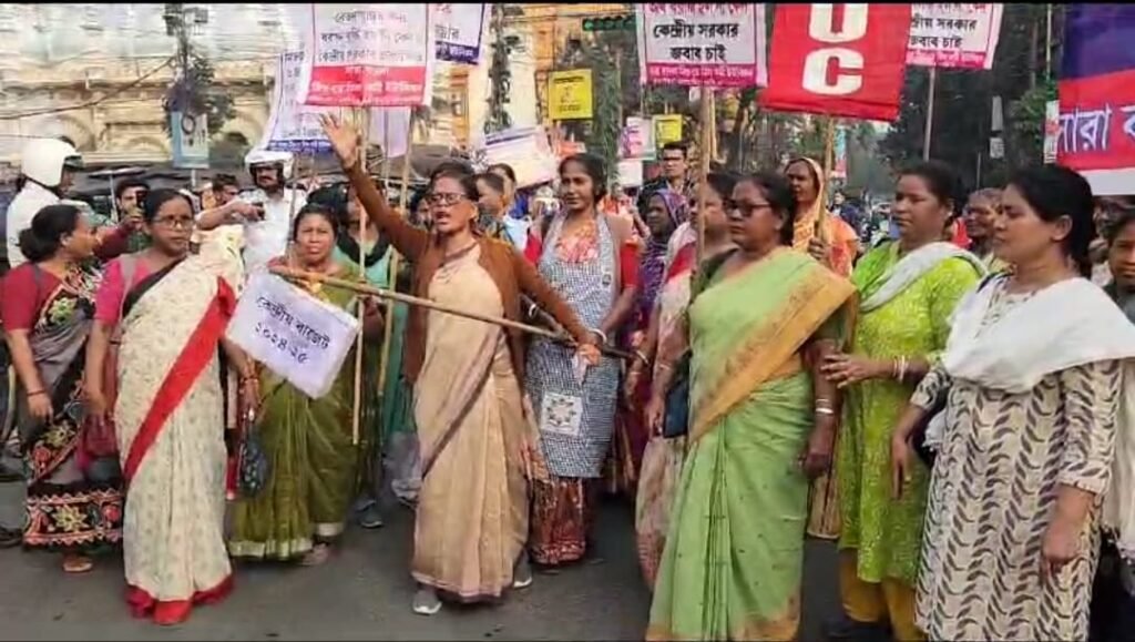 ধর্মতলা মোড় অবরোধ করে কেন্দ্রীয় বাজেটের প্রতিলিপি পুড়িয়ে বিক্ষোভ দেখানো হয়। অল ইন্ডিয়া মহিলা সাংস্কৃতিক সংগঠনের তরফে জানানো হয়, “দীর্ঘদিন ধরে এই শোষিত বঞ্চিত কর্মীরা তাদের বেতন বৃদ্ধি, ভাতা প্রদান, অন্যান্য সুযোগ সুবিধা ও বছরে ১০ মাস নয়, ১২ মাসের বেতনের দাবিতে আন্দোলন চালিয়ে যাচ্ছেন, কেন্দ্র- রাজ্য সরকারের কাছে দাবি জানিয়ে আসছেন।