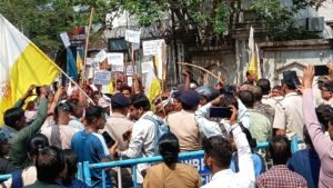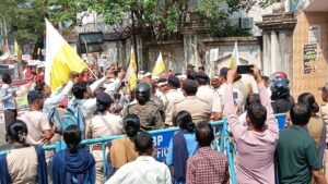 সোমনাথ বরাট, আমাদের ভারত, বাঁকুড়া, ১৬ এপ্রিল: আদিবাসী ভূমিজ সমিতির ডেপুটেশন ঘিরে ব্যাপক উত্তেজনা ছড়িয়ে পড়ে বাঁকুড়া শহরের জেলা শাসকের দপ্তর এলাকায়। চূয়াড় বিদ্রোহের ইতিহাসকে বিকৃতি করা বন্ধ, ভূমিজ ভাষাকে স্বীকৃতি, জোহর স্থানের পবিত্রতা ও সংরক্ষণ সহ বিভিন্ন দাবিতে আজ জেলাশাসকের কাছে স্মারকলিপি পেশ করে ভারতীয় আদিবাসী ভূমিজ সমিতি। স্মারকলিপি পেশ করতে কয়েক হাজার আদিবাসী মিছিল করে জেলাশাসকের দপ্তরের উদ্দেশ্যে রওনা দেয়।জেলাশাসকের দপ্তরের বেশ কিছু আগে পুলিশ মিছিলের গতিরোধ করলে ব্যাপক উত্তেজনা ছড়িয়ে পড়ে। ক্ষুব্ধ আদিবাসীরা রাস্তায় বসে পড়ে অবরোধ শুরু করেন।উত্তেজিত আদিবাসীরা সমস্ত রাস্তা অবরোধের হুমকি দিতে থাকেন। পুলিশ আধিকারিকরা এসে পরিস্থিতি নিয়ন্ত্রণে আনেন।