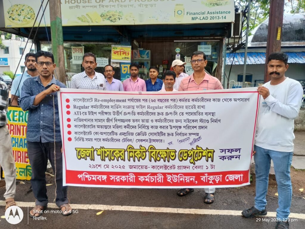 পশ্চিমবঙ্গ সরকারি কর্মচারী ইউনিয়নের পক্ষ থেকে কয়েক দফা দাবিতে আজ বাঁকুড়া জেলা শাসকের কাছে ডেপুটেশন দেওয়া হয়।