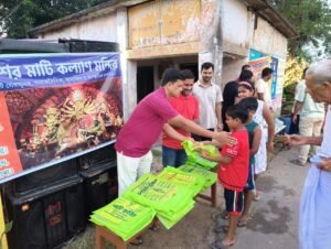 পারুল খামারিয়া, আমাদের ভারত, আরামবাগ, ১ নভেম্বর: হুগলি জেলার পুড়শুড়া বিধানসভার অন্তর্গত জঙ্গলপাড়া গ্রামে শ্রীশ্রী কালী পূজা ও শুভ দীপাবলি উপলক্ষ্যে ১৫০টি দুঃস্থ পরিবারের হাতে বস্ত্র তুলে দিল ‘দেশের মাটি কল্যাণ মন্দির’ কর্তৃপক্ষ। সেই সঙ্গে পাঁচ শতাধিক মানুষের হাতে মায়ের আশীর্বাদ স্বরূপ পরমান্ন তুলে দেওয়া হয়। দেশের মাটি কল্যাণ মন্দিরের অন্যতম প্রতিষ্ঠাতা বিশিষ্ট শিক্ষক মিলন খামারিয়া ও অধ্যাপক ড: কল্যাণ চক্রবর্তীকে এই কাজের জন্য ধন্যবাদ জানিয়েছেন গ্রামবাসীরা। এই বস্ত্রদান শিবিরের আয়োজন করে দেশের মাটি কল্যাণ মন্দিরের আরামবাগ শাখা।