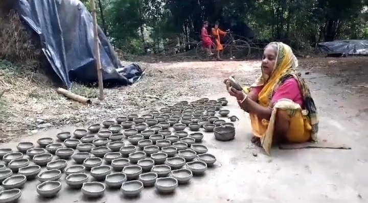 পুরুষদের সঙ্গে সমানে সাহায্য করতে হয় বাড়ির মেয়েদের কেউ। বিগত তিন চার বছর মাটির প্রদীপের চাহিদা বেড়েছে কালীপুজোর সময়। সামনে কালীপুজো উপলক্ষে কুমোর পাড়ার ঘরে ঘরে মাটির প্রদীপ তৈরি করতে ব্যস্ত কুম্ভকারেরা। এই এলাকার কুম্ভকারেরা মাটির প্রদীপ তৈরি করে পাইকারি বাজারে বিক্রি করে। প্রতিবছর দুর্গাপুজো পর থেকেই মাটির প্রদীপ তৈরীর অর্ডার আসে দীপাবলি উপলক্ষে।