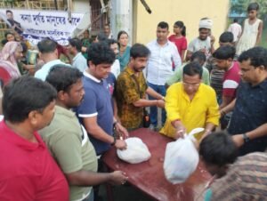 ঘাটালের বন্যা প্লাবিত এলাকায় ত্রাণ সামগ্রী বিলি করলেন মোহনবাগানের প্রাক্তন ফুটবলার দিব্যেন্দু বিশ্বাস।