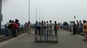 আমাদের ভারত, নদিয়া, ৬ অক্টোবর: এক্সটেনশন প্লেট বসে যাওয়ায় যান চলাচলে বিপত্তি। ঘটনায় ব্যাপক যানজটের সৃষ্টি হয় নবদ্বীপের গৌরাঙ্গ সেতুতে।