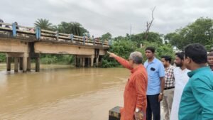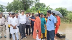 অমরজিৎ দে, ঝাড়গ্রাম, ৯ জুলাই: ঝাড়গ্রাম জেলার নদী পার্শ্ববর্তী বন্য কবলিত এলাকা পরিদর্শনে সেচ মন্ত্রী মানস ভুঁইঞা। সকালে ঝাড়গ্রামর সার্কিট হাউস থেকে রওনা দিয়ে প্রথমেই ঝাড়গ্রামের গোপীবল্লভপুর ২নং ব্লকের তপসিয়া এলাকায় কয়েকটি জায়গা পরিদর্শন করেন। সেখান থেকে মালিঞ্চা গ্রামে যান। মালিঞা গ্রামে সুবর্ণরেখা নদীর পাড় ভাঙ্গন পরিদর্শন করে যথেষ্ট উদ্বেগ প্রকাশ করেন। গ্রাম থেকেই সচিবকে ফোন করে এলাকার পরিস্থিতি নিয়ে উদ্বেগ প্রকাশ করেন। সাথে থাকা অ্যাসিস্টেন্ট ইঞ্জিনিয়ারকে দ্রুত পরিকল্পনার নির্দেশ দেন।