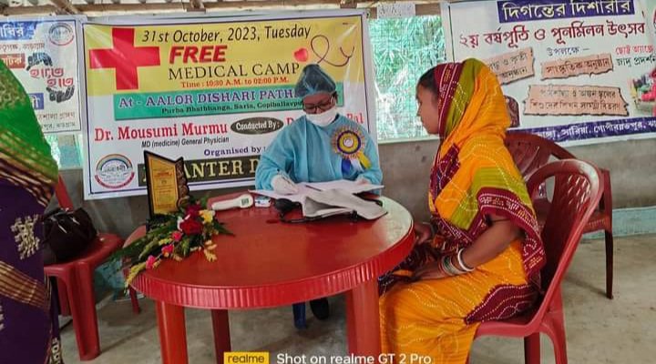 ঝাড়গ্রাম জেলার গোপীবল্লভপুর-১নং ব্লকের সারিয়া অঞ্চলের দারিদ্র্য কবলিত পূর্বভাতভাঙ্গা গ্রামে স্বেচ্ছাসেবী সংগঠন দিগন্তের দিশারী’র উদ্যোগে সংগঠন পরিচালিত “আলোর দিশারী” পাঠশালার ৮২ জন শিশু ও তাদের অভিভাবক ও অভিভাবিকাদের জন্য অনুষ্ঠিত হলো একটি বিনামূল্যে স্বাস্থ্য পরীক্ষা শিবির। সব মিলিয়ে প্রায় ১৫০ জনকে বিনামূল্যে চিকিৎসা ও ঔষধ দেওয়া হয়।