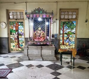 প্রতি বছর এখনও কালীপুজোর পর ওই প্রাসাদের মন্দিরে ঘটা করে অন্নপূর্ণা পুজো হয়। অন্দরের প্রশস্ত, মূল্যবান পাথরে আচ্ছাদিত সিঁড়ি দিয়ে দোতলায় উঠে ঢুকলাম মন্দিরে। সুদৃশ্য সিংহাসনে অধিষ্ঠিত, ফুলের সাজে সুসজ্জিত মদনমোহন। সাথে রাধিকা। রয়েছেন গোকুল কন্যা বিষ্ণুপ্রিয়াও। নিচে সিঁড়ির মুখে দোলনায় বসে রাধাকৃষ্ণ।
