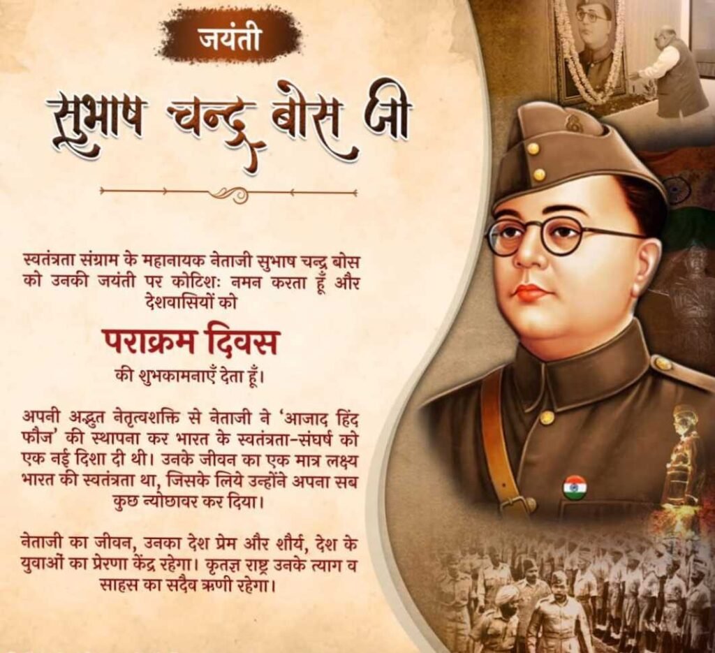 “আমি স্বাধীনতা সংগ্রামের মহান নেতা নেতাজি সুভাষ চন্দ্র বসুকে তাঁর জন্মবার্ষিকীতে শ্রদ্ধা জানাই এবং দেশবাসীকে বীরত্ব দিবসের শুভেচ্ছা জানাই। নেতাজি তাঁর বিস্ময়কর নেতৃত্বের শক্তি দিয়ে ‘আজাদ হিন্দ ফৌজ’ প্রতিষ্ঠা করে ভারতের স্বাধীনতা সংগ্রামকে একটি নতুন দিকনির্দেশনা দেন। তাঁর জীবনের একমাত্র লক্ষ্য ছিল ভারতের স্বাধীনতা, যার জন্য তিনি সর্বস্ব উৎসর্গ করেছিলেন।