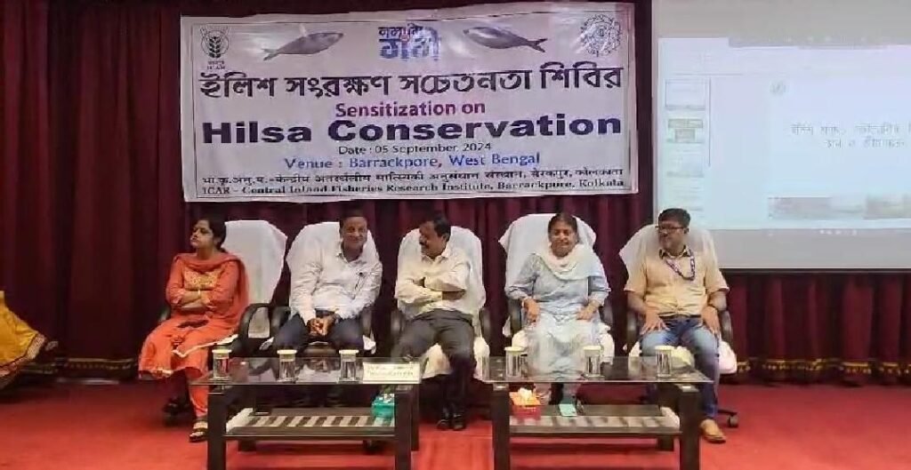ইলিশ মাছ কখন ধরা উচিত, কোন ধরনের ইলিশ ধরলে ইলিশের প্রজাতি বিলুপ্ত হয়ে যাবে সেই সমস্ত বিষয়ে প্রশিক্ষণ দিতে ব্যারাকপুর কেন্দ্রীয় আর্ন্তদেশীয় মৎস্য গবেষণা কেন্দ্রে গঙ্গার তীরবর্তী জেলেদের নিয়ে অনুষ্ঠিত হলো ইলিশ সংরক্ষণ সচেতনতা শিবির। এই অনুষ্ঠানে শুধু ব্যারাকপুর নয়, কোলাঘাট, বলাগড় সহ রাজ্যের বিভিন্ন প্রান্তের জেলেভাইরা অংশ গ্রহণ করেন।