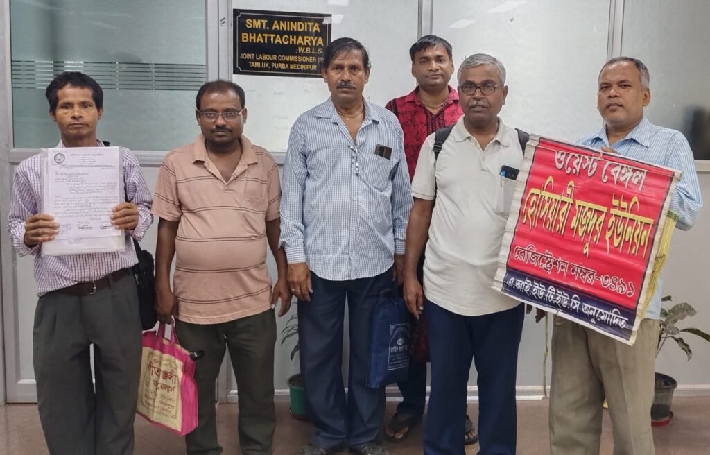 রাজ্য সরকারের শ্রম দপ্তর গত ৪ (২০২২,২৩,২৪,২৫) বছরে ৭ বার হোসিয়ারী শ্রমিকদের নূন্যতম মজুরি বৃৃদ্ধির কথা ঘোষণা করলেও পূর্ব মেদিনীপুর জেলার প্রায় লক্ষাধিক হোসিয়ারী শ্রমিকদের ক্ষেত্রে তা কার্যকর হয়নি। অবিলম্বে সরকার ঘোষিত ওই মজুরি বৃদ্ধি অনুসারে রেট বৃদ্ধির দাবিতে গত ৩ এপ্রিল এআইইউটিইউসি অনুমোদিত ওয়েস্ট বেঙ্গল হোসিয়ারী মজদুর ইউনিয়নের পূর্ব মেদিনীপুর জেলা কমিটির পক্ষ থেকে শ্রম দপ্তরের পূর্ব মেদিনীপুর জেলার জয়েন্ট লেবার কমিশনার অনিন্দিতা ভট্টাচার্যকে অভিযোগপত্র জমা দেওয়া হয়েছিল। লেবার কমিশনার শ্রম আইন অনুসারে প্রয়োজনীয় পদক্ষেপ করার আশ্বাস দিয়েছিলেন প্রতিনিধি দলকে। সেইমত উভয় সংগঠনের প্রতিনিধিদের নিয়ে উনি আজ একটি সভা আহ্বান করেন। কিন্তু সেই সভায় মালিকপক্ষের কোনো প্রতিনিধি উপস্থিত হননি। তবে মালিক অ্যাসোসিয়েশনের পক্ষে গণেশ কান্ডার একটি চিঠি দিয়ে আগামী শনিবার থেকে ২০২২ সালের মজুরি বৃদ্ধি কার্যকর করা হবে বলে জানিয়েছেন। লেবার মালিকদের রাজ্য সংগঠনের পক্ষ থেকে শ্রম দপ্তরের অতিরিক্ত শ্রম কমিশনারকে দেওয়া একটি চিঠির প্রতিলিপিও ওই চিঠির সাথে জমা দেওয়া হয়েছে।