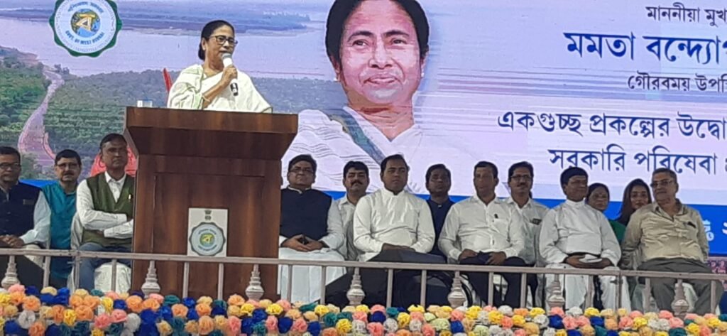এখানে জল প্রকল্পর কাজ যেন তাড়াতাড়ি হয় তার জন্য ডিএমকে নির্দেশ দেন। বিজেপির উদ্দেশ্যে তিনি আরো বলেন, এরা বসন্তের কোকিল। এরা মিথ্যে বলে মানুষকে ভুল বোঝায়, এদের ফাঁদে পা দেবেন না। বিজেপি শাসিত রাজ্যে আদিবাসীদের উপর অত্যাচার হয়, আমরা আদিবাসীদের জমির অধিকার ফিরিয়ে দিয়েছি। পরে তিনি আরো বলেন, মনে রাখবেন, আমি যেটা বলি সেটা করি। তিনি বলেন, একটি বাচ্চা ছেলে বলেছিল দিদি শুধু মেয়েরা সাইকেল পাবে, ছেলেরা পাবে না? আমি সবাইকে সবুজ সাথী সাইকেল দিয়েছি। স্কুলগুলিকে বলেন, তার লেখা গানগুলো যেন বলা হয়। আমি হারমোনিয়াম বাজাতেও পারি আবার ধামসা মাদল বাজাতেও পারি।