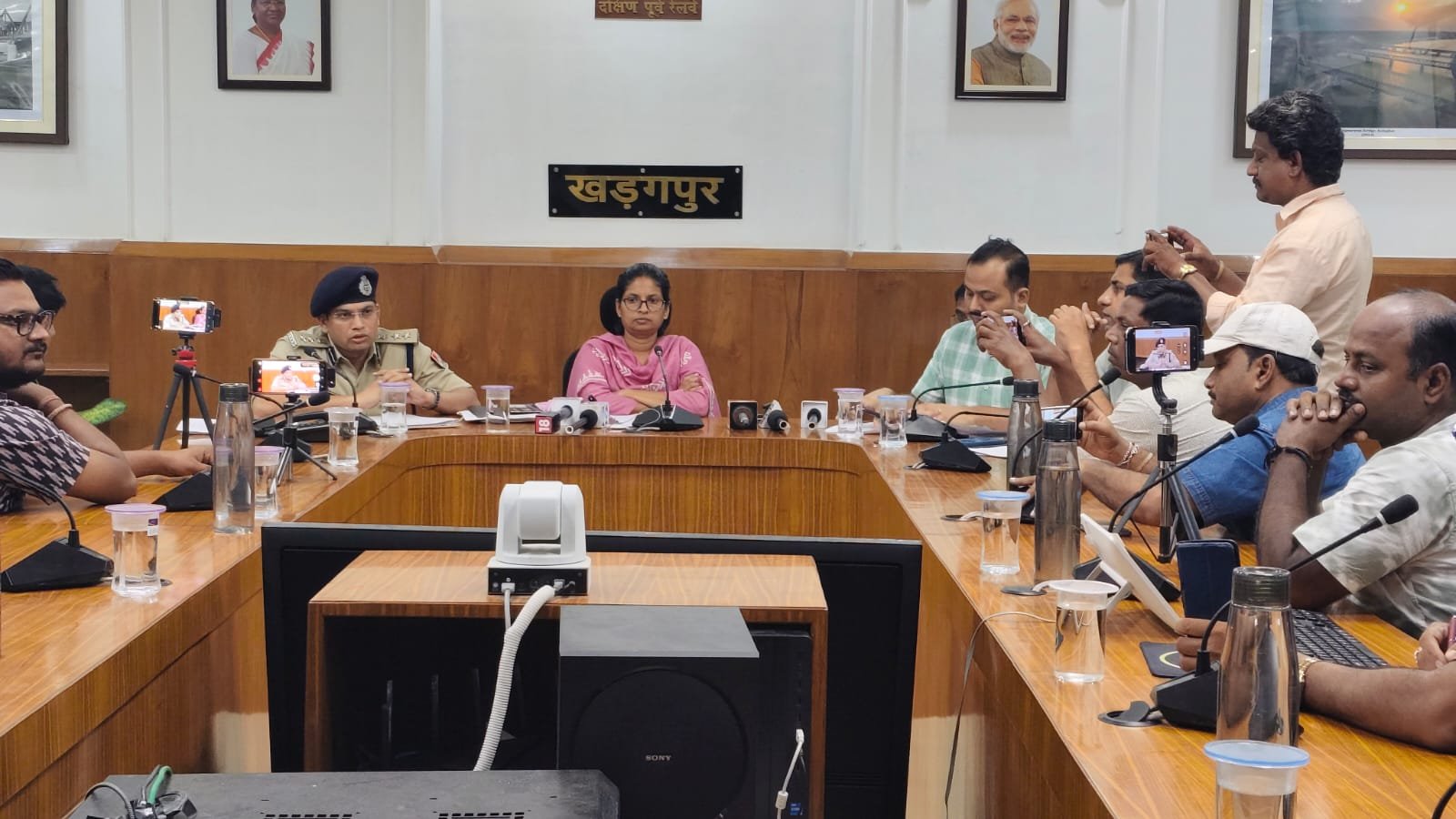 পার্থ খাঁড়া, আমাদের ভারত, পশ্চিম মেদিনীপুর, ১৮ সেপ্টেম্বর: খড়্গপুর রেল বিভাগের ডিআরএম কনফারেন্স রুমে আজ এক গুরুত্বপূর্ণ প্রেস কনফারেন্স অনুষ্ঠিত হয়। সভায় সভাপতিত্ব করেন অতিরিক্ত বিভাগীয় রেলওয়ে ব্যবস্থাপক (অপারেশনস) শ্রীমতী মণীষা গোয়েল। উপস্থিত ছিলেন নিশান্ত কুমার (সিনিয়র বিভাগীয় বাণিজ্যিক ব্যবস্থাপক), প্রকাশ কুমার পণ্ডা (সিনিয়র বিভাগীয় নিরাপত্তা কমিশনার), অনুপ প্যাটেল (সিনিয়র বিভাগীয় প্রকৌশলী), প্রভাত প্রসাদ (সিনিয়র বিভাগীয় অপারেটিং ম্যানেজার) এবং প্রদীপ্ত সাহু (সিনিয়র বিভাগীয় যান্ত্রিক প্রকৌশলী)।