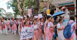 এদিন স্কুল ছুটির পর আর জি কর কাণ্ডের প্রতিবাদে বিচার চেয়ে পথে নামলো বনগাঁর ছয়ঘড়িয়া ঠাকুর হরিদাস স্কুলের ছাত্রীরা। হাতে প্ল্যাকার্ড নিয়ে আর জি কর কান্ডের বিচার চেয়ে বনগাঁ বাটার মোড় এলাকায় অবস্থান বিক্ষোভ করে তারা। বেশ কিছুক্ষণ চলে তাদের এই অবস্থান বিক্ষোভ। তারপর মিছিল করে স্কুলের সামনে ফিরে যায় পড়ুয়ারা। তাদের একটাই স্লোগান, ‘উই ওয়ান্ট জাস্টিস’।