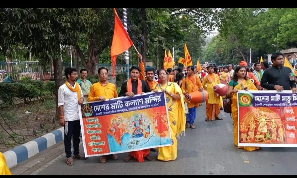 আর সেই দাবিকেই মান্যতা দিয়ে আজ ১লা বৈশাখ’ ১৪৩২, ‘দেশের মাটি কল্যাণ মন্দির’ এবং ‘দেশের মাটি মাতৃ মিলন মন্দির’, ১৪৩২ বঙ্গাব্দের প্রথম দিনে নববর্ষের সুবাতাস অপরাহ্নে সুবেশে, সনাতনী সংস্কৃতির মঙ্গলালোকে বর্ণাঢ্য শোভাযাত্রায় অংশ নিয়ে কলকাতা মহানগরীর পথ পরিক্রমা করে এদিন। পথে হেঁটেছেন আরও দু’টি রাষ্ট্রবোধ সম্পন্ন অরাজনৈতিক সংগঠনের সদস্যরা। তাদের সম্মিলিত স্লোগানে, গানে, কীর্তনে, বাদ্যযন্ত্রে, সাংস্কৃতিক-সজ্জায় রাজপথ উজ্জ্বল হয়ে ওঠে। মহারাজা শশাঙ্ক সাজিয়ে ঘোড়ায় চড়িয়ে ঘোরানো হয়। পথচলতি মানুষেরা তাদের সাধুবাদ জানান। সোশ্যাল মিডিয়ায় ছবি/ভিডিও ছড়িয়ে পড়ে। নববর্ষ এভাবেই পালিত হয় কলকাতা মহানগরীতে।