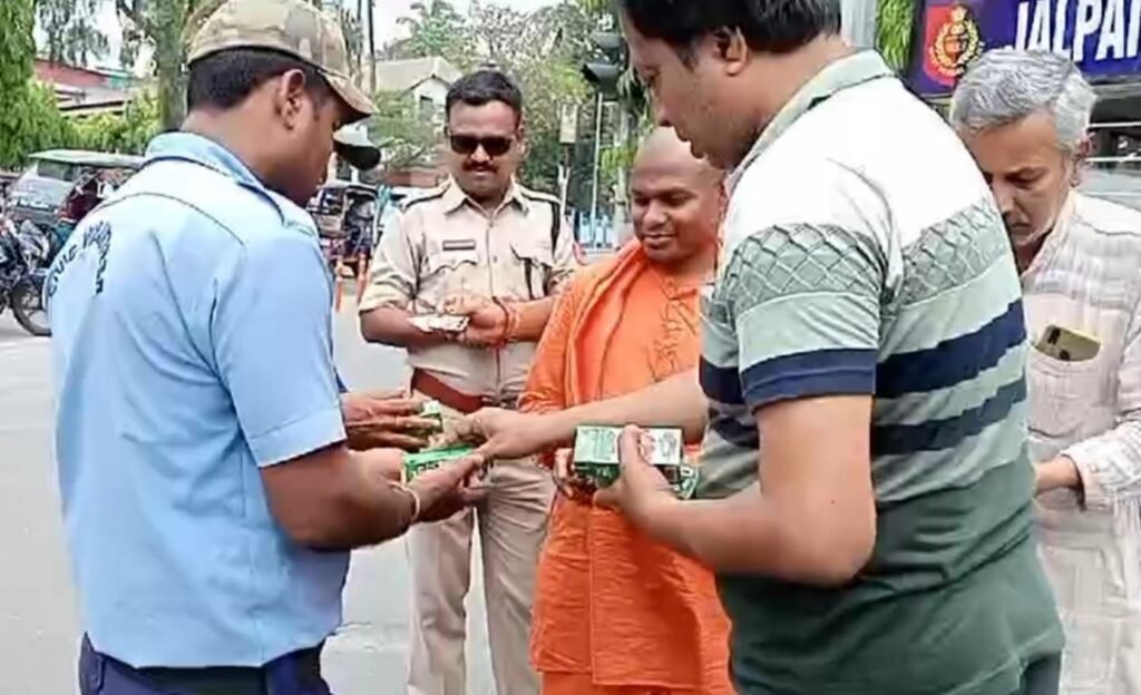 আমাদের ভারত, জলপাইগুড়ি, ১ মে: তীব্র দাবদাহে রাস্তায় দাঁড়িয়ে ট্র্যাফিক পুলিশের কাজ করে যাচ্ছেন পুলিশ কর্মী থেকে সিভিক ভলান্টিয়াররা। বুধবার জলপাইগুড়ি রামকৃষ্ণ মিশন আশ্রমের উদ্যোগে শহরের একাধিক ট্র্যাফিক মোড়ে কর্মরত ট্র্যাফিক পুলিশকে ওআরএস, চকলেট সহ বিভিন্ন সামগ্রী তুলে দেওয়া হল।