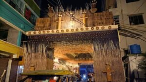 আশিস মণ্ডল, রামপুরহাট, ৮ অক্টোবর: অবলুপ্তির পথে জারোয়া উপজাতি। সেই উপজাতি গোষ্ঠীকেই এবারের থিমে ফুটিয়ে তুলেছে বীরভূমের রামপুরহাট শহরের অন্যতম পুজো কমিটি নবীন ক্লাব। নামে নবীন হলেও থিম ভাবনায় শহরে এই ক্লাবেই প্রথম ছোট্ট জায়গার মধ্যে থিম ভাবনাকে ফুটিয়ে তুলে মানুষকে নিজেদের মণ্ডপের দিকে টেনেছে।