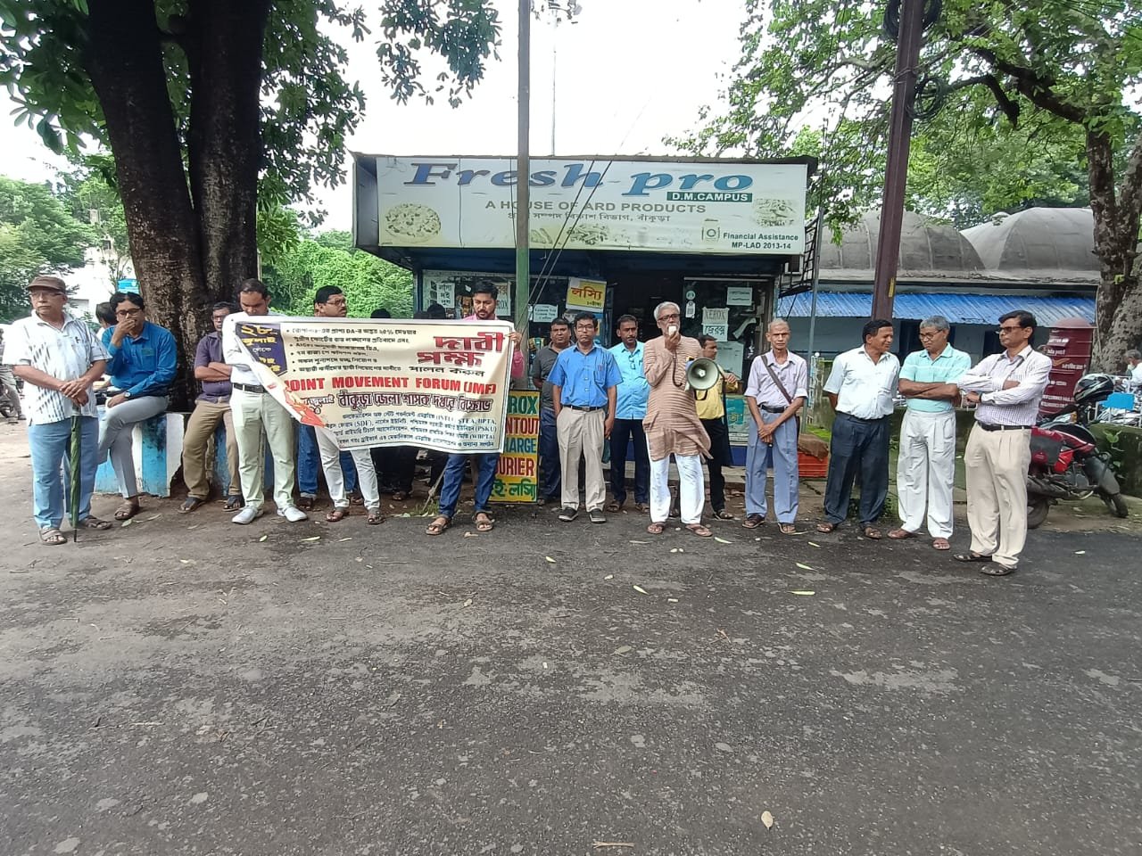 সোমনাথ বরাট, আমাদের ভারত, বাঁকুড়া, ৩১ জুলাই: বকেয়া ডিএ প্রদান সহ কয়েক দফা দাবিতে জয়েন্ট মুভমেন্ট ফোরামের পক্ষ থেকে রাজ্যজুড়ে পালিত হচ্ছে দাবীপক্ষ। তারই পরিপ্রেক্ষিতে আজ ৩১ জুলাই বাঁকুড়া কালেক্টরেটে বিক্ষোভ কর্মসূচি পালিত হয়।