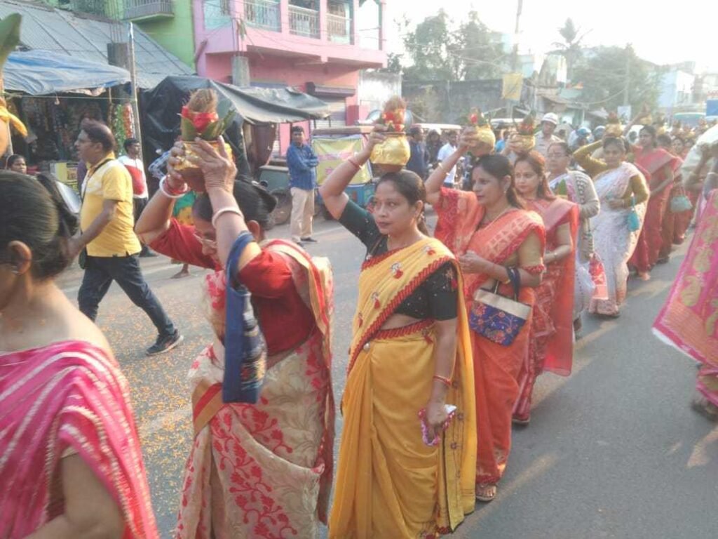 সোমনাথ বরাট, আমাদের ভারত, বাঁকুড়া, ২৬ ডিসেম্বর: গো কৃপা কথা উপলক্ষে কলস শোভা যাত্রা ঘিরে ব্যাপক উন্মাদনা বাঁকুড়া শহরে। পাঁচ দিনোর গো কৃপা কথার আয়োজন করেছে বাঁকুড়া এক্তেশ্বর গোশালা কমিটি। গো কৃপা কথা উপলক্ষে বাঁকুড়া শহরের নুতনগঞ্জে রাম মন্দির চত্বর থেকে শুরু হয় কলস শোভাযাত্রা। শোভাযাত্রায় ১০৮ জন মহিলা অংশ নেন।এছাড়া বাঁকুড়া মাড়োয়ারি সম্প্রদায় সহ বহু ধর্মপ্রাণ মানুষ উপস্থিত ছিলেন।