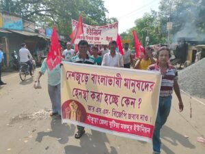 সোমনাথ বরাট, আমাদের ভারত, বাঁকুড়া, ২৩ জুলাই: জাত-ধর্ম-ভাষা নিয়ে বিশেষ করে বিজেপি শাসিত রাজ্যগুলিতে বাংলাভাষী মানুষজনের ওপর বাংলাদেশি তকমা দিয়ে প্রশাসনের পক্ষ নির্যাতনের অভিযোগ উঠেছে। তারই প্রতিবাদে আজ সকালে বামপন্থী শ্রমিক সংগঠনগুলির উদ্যোগে মিছিল ও প্রতিবাদ সভার আয়োজন করা হয়। এছাড়াও নির্বাচন কমিশন বিজেপি দলের রাজনৈতিক অভিসন্ধি পূরণ করতে বিহারের ৭১লক্ষ সহ বিভিন্ন রাজ্যে কোটি কোটি মানুষের ন্যায্য ভোটাধিকার কেড়ে নিতে উদ্যত হয়েছে বলে যে অভিযোগ উঠেছে তার বিরুদ্ধেও তীব্র ধিক্কার জানানো হয়।